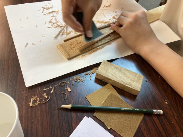 学校をバスで出発し、碓氷峠を散策したのち志賀高原に到着。到着後には箸作りを体験しました。