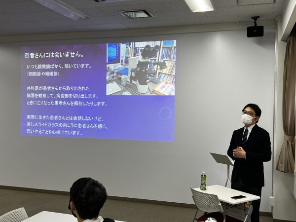 濱島先生は病理医として勤務されており、検査で採取された材料から疾患名を確定させ、治療方法の方向性を示すといった難しい判断に日々取り組まれています。