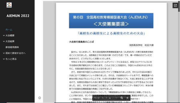 毎年、開催されるこの大会は第6回をむかえ、コロナ下でもオンラインで継続して行われてきました。今大会は、対面での会議とオンラインとどちらも予定されているようです。本校生徒が実行委員長を担うのは、第1回大会に続いて2度目で、これまでも実行委員、また大使(参加者)として参加してきました。