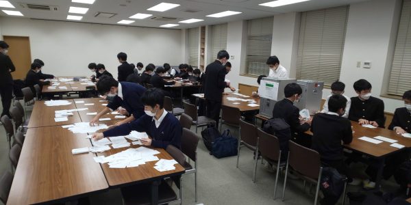 昨日、来年度の生徒会役員を決める選挙を行いました。本格的な投票所の雰囲気の中、皆粛々と投票していました。(文責 選挙管理委員会)