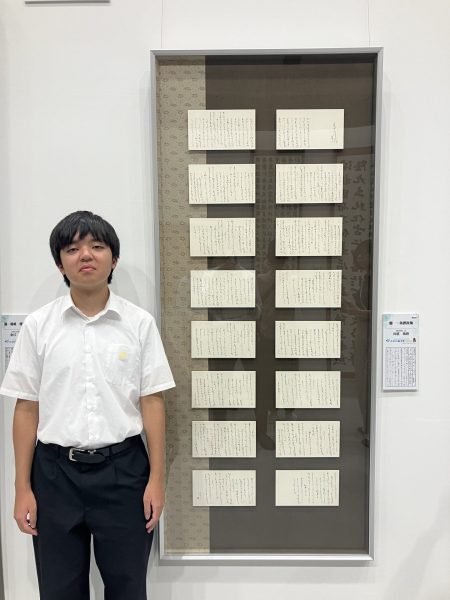 呉屋君は、昨年12月に行われた神奈川県の高等学校書道展において、第1位である教育長賞を受賞し、代表者に選ばれました。