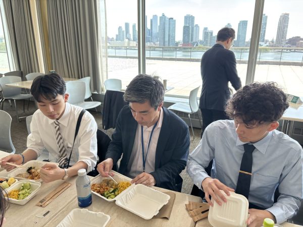 この日、会議に先立ち、国連職員の山口知也さんのお招きで、国連本部内の食堂で昼食をとることができました。ここでのランチはビュッフェ方式で、容器に好きなだけ盛ってから量り売りするスタイルです。山口さんからは、国連職員としての仕事内容などを直接聞くことができました。