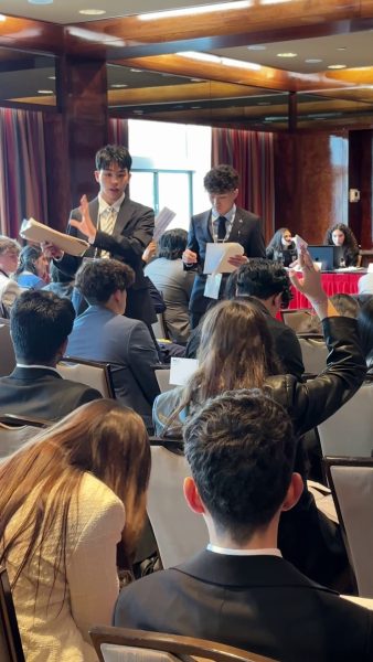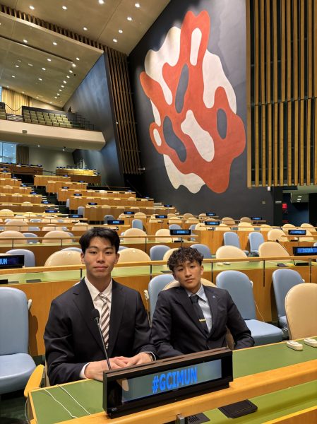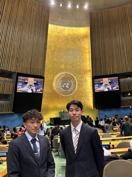 ディベート部の久保田義弘君(高3)と中田侑之介君(高3)の二人が出場する模擬国連国際大会が始まりました。
