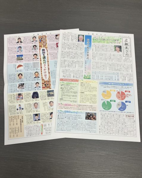 7月9日(水)に「広報あさの」第123号を発行しました。 今回は、担任の先生方に「ご担当の教科を選んだきっかけは何でしたか?」とお聞きしました。先生方の熱い思いが感じられる、素敵なエピソードが詰まった記事になりました。ぜひ、ご覧ください。現在、広報部では、来年1月発行予定の第124号に関する取材や編集作業を行っています。躍動感あふれる学園の様子をお届けしたいと思っております。どうぞお楽しみに。(文責:PTA広報部)